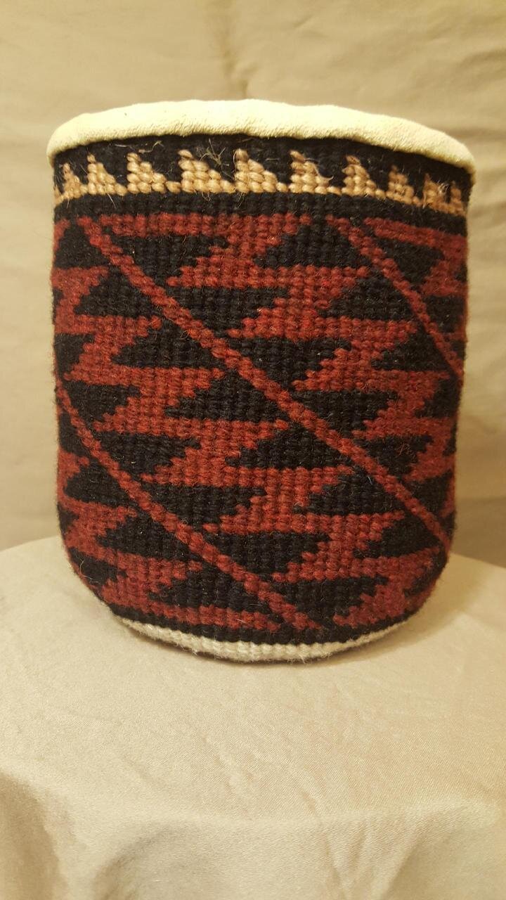 This traditional root harvesting bag was often taken out across the semi-arid desert to be filled with bitterroot during spring harvest. Today we use it for much more. This basket starts with a plaited base secured in place with reverse twining. An emphasis on tension and shaping, hidden splicing, and smooth spoke additions while perfecting the reverse twine will be emphasized throughout the project. As you weave up the sides of your bag the beautiful two-colored pattern emerges. The basket is finished with a twined down rim. Hemp cord and wool yarn are the primary materials for this project. Pre-prepared dogbane fibers are woven in a single row near the rim to honor the traditions and early material these baskets were made from.