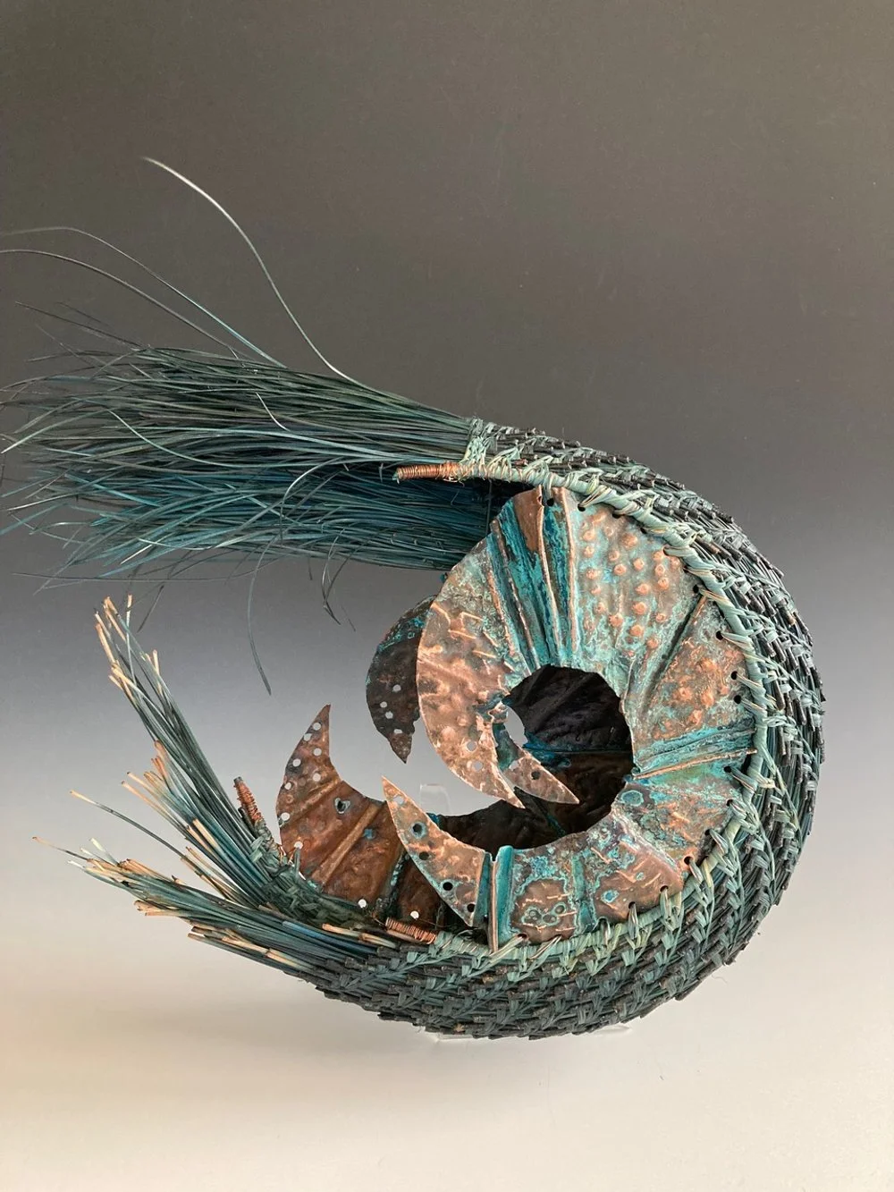 I graduated from San Jose State University in California in 1976 with a degree in ceramics and weaving. My baskets combine the shapes I would make with clay with the texture and colors I would use with weaving. There are inherent limitations to the medium that create a challenge for me to search beyond those boundaries, to be curious about the possibilities, and explore the potential of what pine needles can actually do. This is where the true art comes into being and allows others to see the possibilities of needles and maker.”